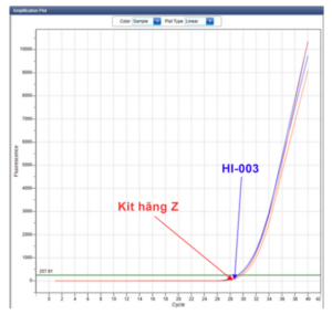 Figure 2: Comparison of ABT's HI-003 magnetic extraction kit on HBV sample with another supplier (Brand Z).