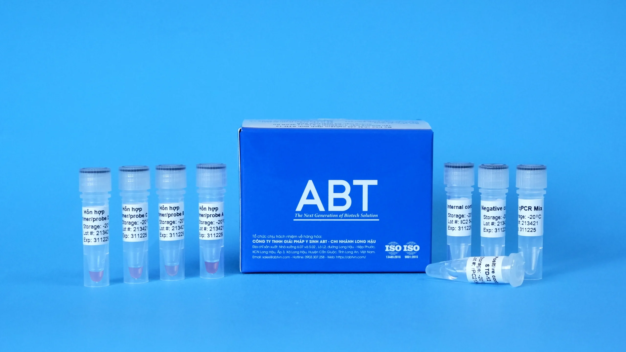| Thành phần bộ kit | STD-14 qPCR Mix, Hỗn hợp Primer/probe A, Hỗn hợp Primer/probe B, Hỗn hợp Primer/probe C, Hỗn hợp Primer/probe D, Chứng dương, Chứng âm, Chứng nội, PCR tube |